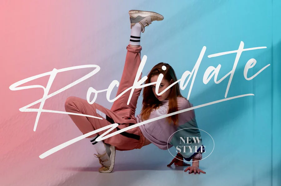 Here’s another favorite cursive font type. The commercial sticker font is popularly used on signboards, business cards for freelancers, etc., to give pop and color to their work. The font can also be used as online stickers and promote your brand to your customer’s inbox.