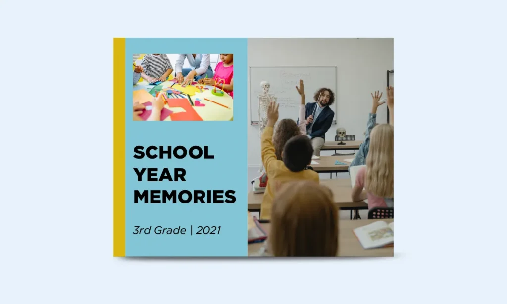 Till 2019, the classic black and white yearbook cover design is most preferred. Post-pandemic, the preference has got trendy, and people prefer to stay updated across the yearbook. A simple hack would be to use low-quality photos in black and white to get the classic coherent visual. Design Experts use an iconic color palette that is both colorful and sharp.