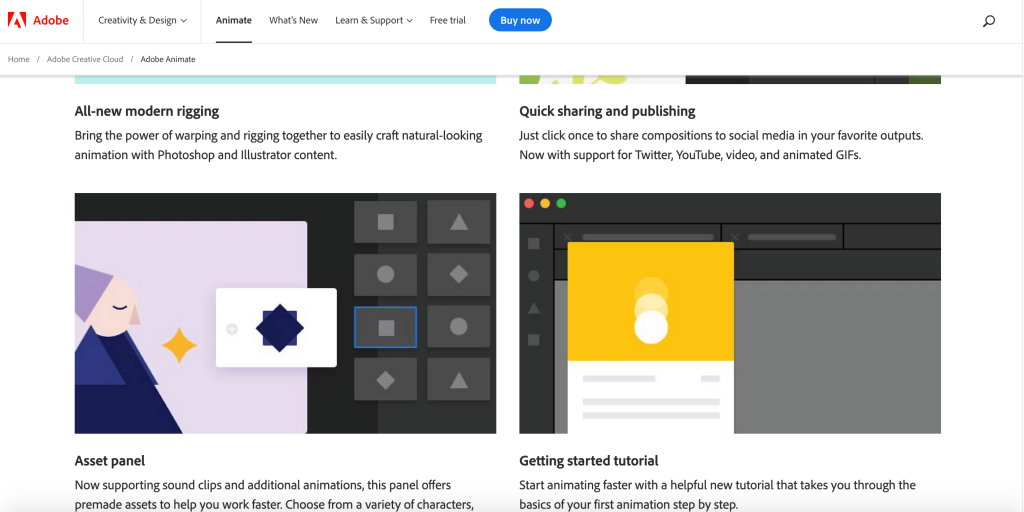 - Publish to Multiple Platforms: Users can publish their animations in various formats, including HTML5 Canvas, WebGL, GIF, and video.
