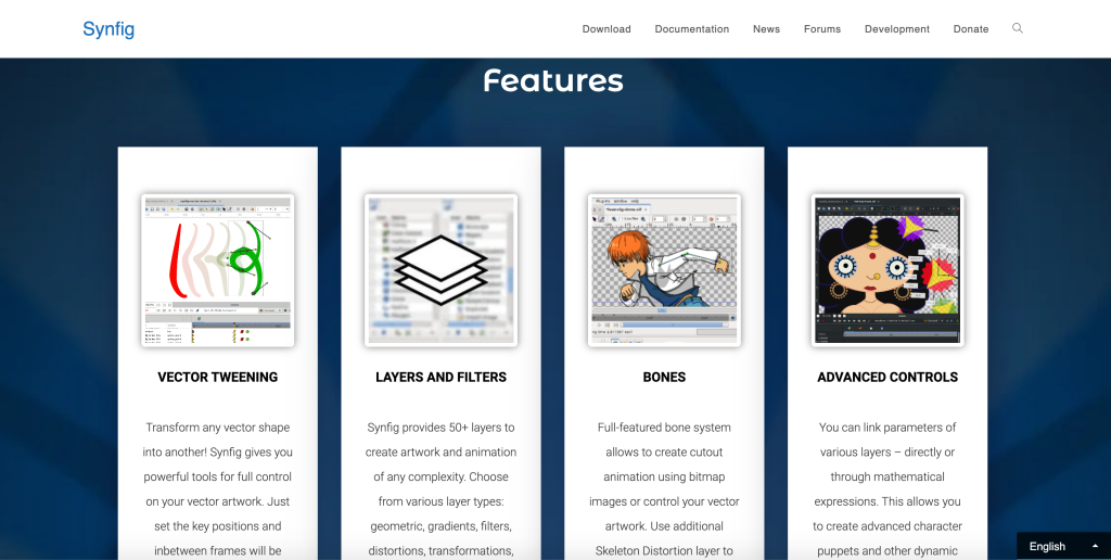 - Layers and Filters: Synfig Studio supports multiple layers and various filters, providing users with flexibility in creating complex and visually appealing animations.