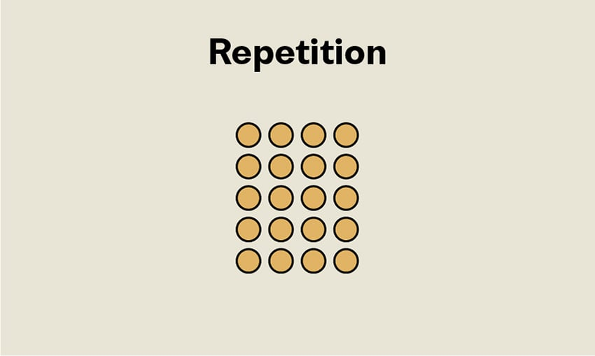 Repetition creates consistency and unity in a design by repeating visual elements such as colors, shapes, or patterns. This helps reinforce the overall brand identity and enhances recognition.