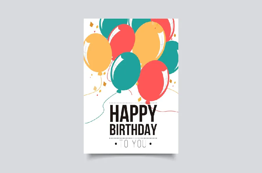 Flat Birthday Card with Balloons