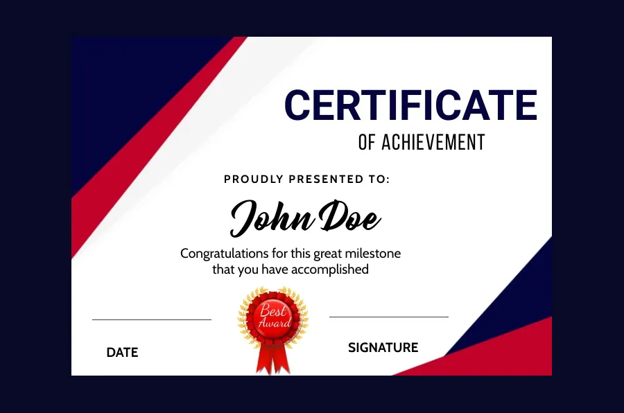 It usually contains a title, presentation line, recipients, from, description, date, and signature. To design a certificate that fits professional standards, consider the following tips: