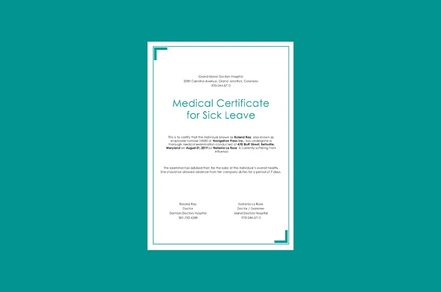 A medical certificate is usually provided by a physician or medically qualified healthcare provider to verify the result of the medical examination of a patient.