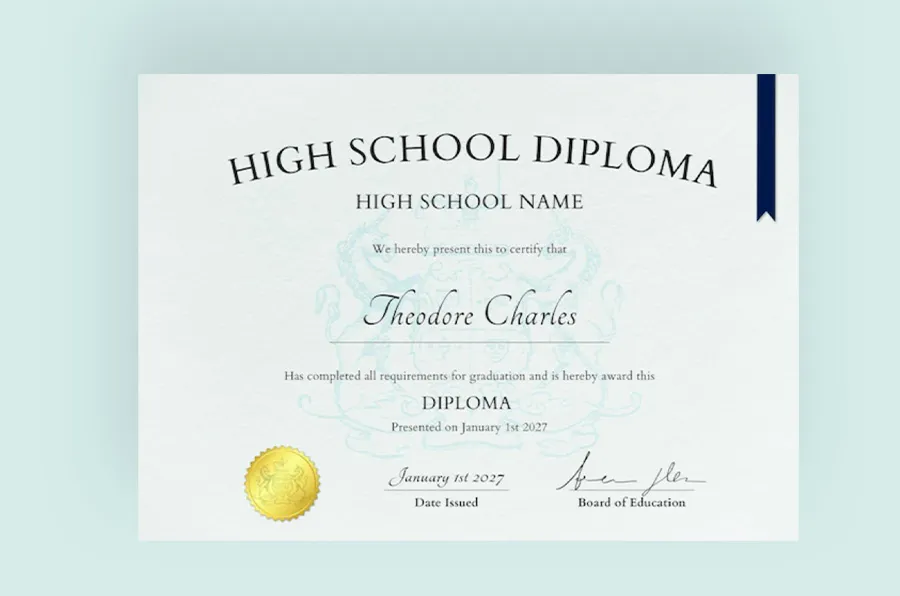 A diploma certificate is awarded by an educational institution such as a university or college to prove that the recipient has completed their course and has successfully graduated.