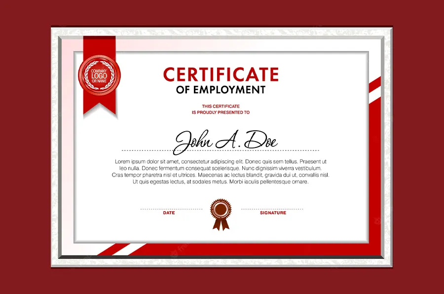 An employment certificate is a formal acknowledgment by a present or past employer. This certificate specifically states that an employee works or has previously worked for the company.