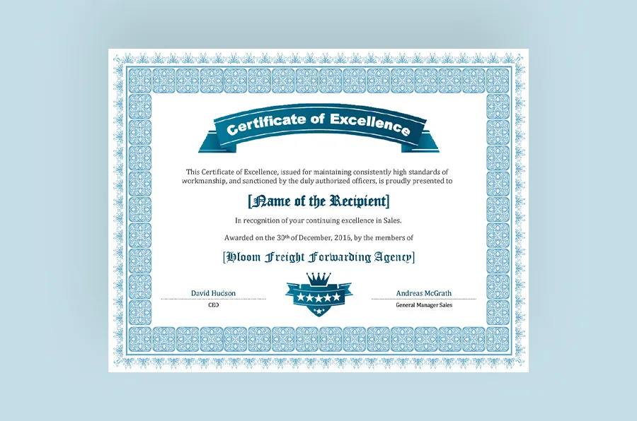Certificate designs are proof that you have gained more field-relevant knowledge/skills and have what it takes to compete and excel in your field. Every organization and institution has its specific design that sets them apart from its competitors.