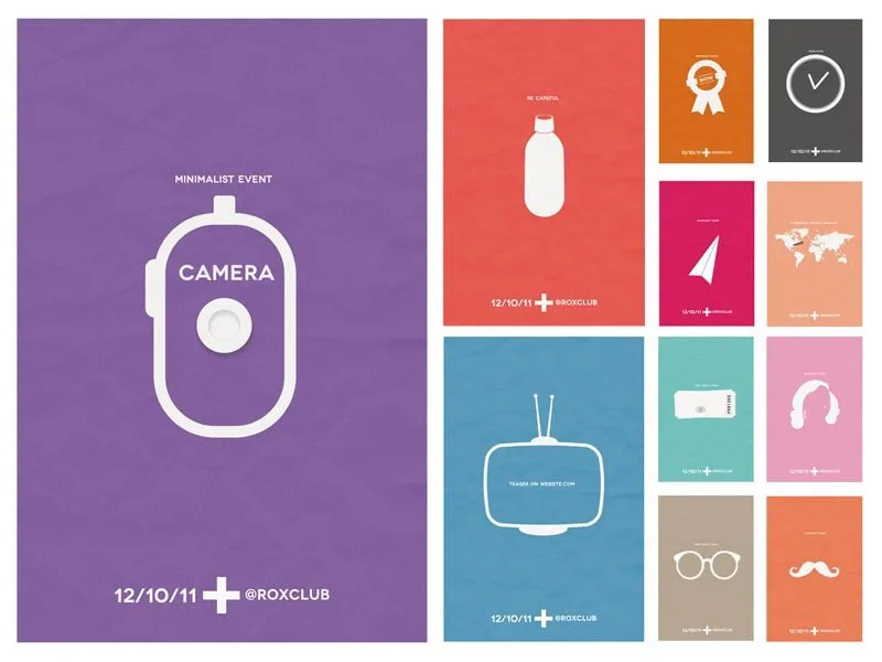 Do you want people to focus only on your flyer? Try simple or minimalist designs. There’s a reason that well-known, prosperous companies like Apple favor minimalism in their design aesthetic: it works. It’s stylish. People enjoy it. Consider the following flyers created by Barthelemy Chalvet: the font is basic and clean, the information is condensed to just what is necessary, and the focus is on a single image surrounded by a lot of negative space.