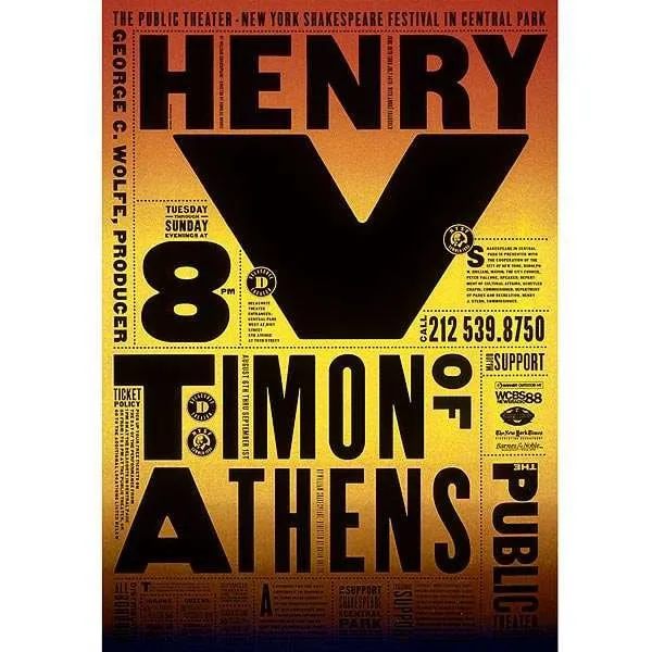 The use of typography is crucial in practically all flyer designs. However, the text itself can function well as the only design element. This vintage theater poster by Paula Scher distinguishes out because of its bold type.
