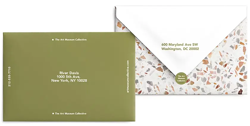 Sign, seal, and deliver: Send your mockup to an envelope print shop once you know how many you need. Then, it’s time to ship those envelopes once the printer has them ready.