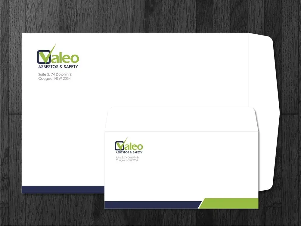 Note how the Valeo envelope concentrates only on the essential details, like the contact information, brand colours, and the company logo design. Check out some small business packaging desig ideas.
