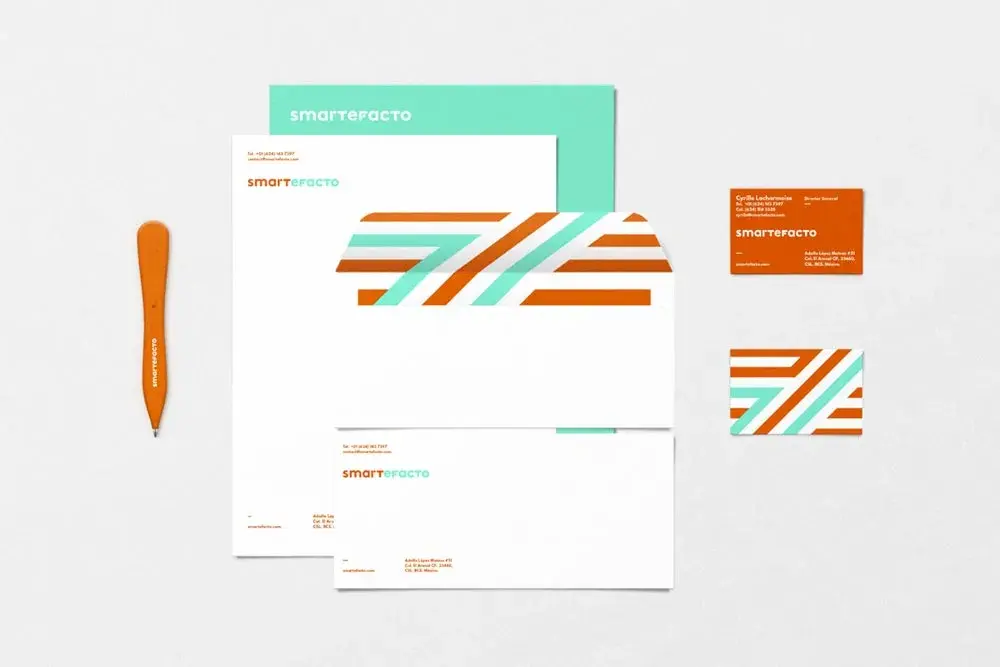 As shown in this creative envelope for Smartefacto, using diagonal lines is a simple approach to convey a sense of motion and dynamic energy.