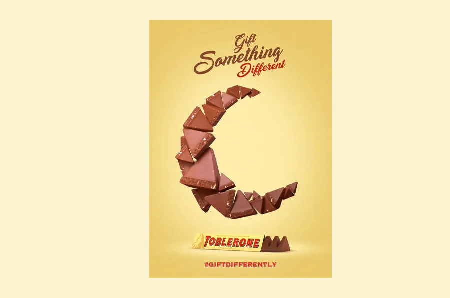 If you are creating a creative poster design to promote a product, then the product should be the focal point of your poster’s design. For example, take this poster designed for Toblerone. Toblerone is a famous chocolate brand known by one and all.