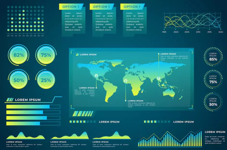 For example, in a geographic infographic, you can represent data of the number of people migrating from one place to another much more straightforwardly. Or in an informational infographic measuring the percentage of the presented data’s performance.