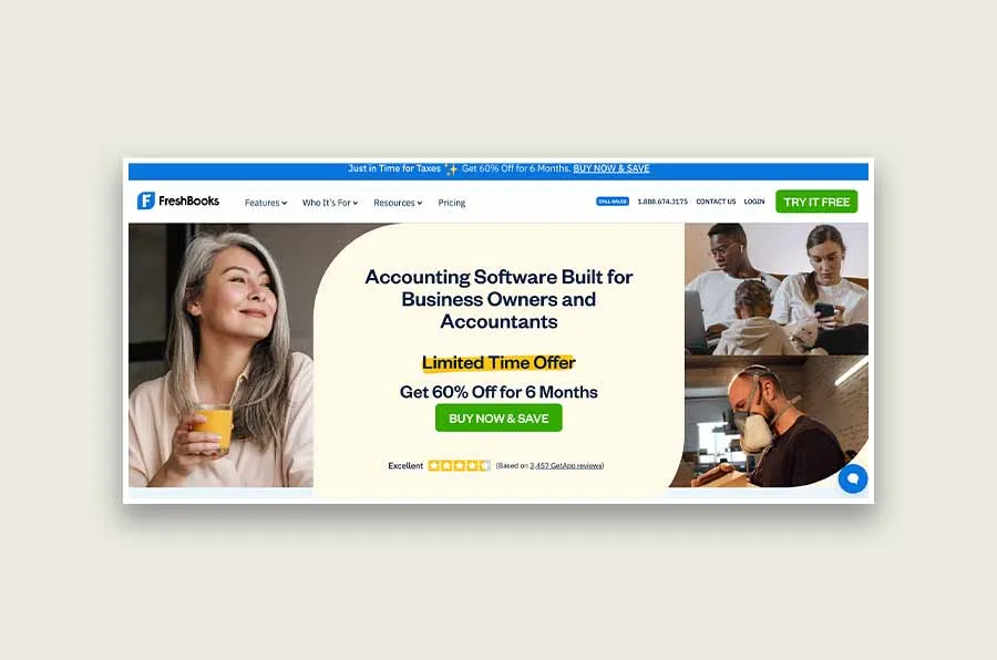 Its homepage is easy to browse and find information you want. It does an excellent job filling them in on a few key benefits of the software. The homepage is blended aesthetically with different colors, calls to action, and compelling copy to keep clients glued to the page. Importantly, this home page also has offers and reviews at the top.