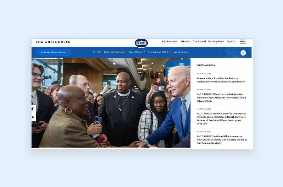 Unlike other government websites, whitehouse.gov has a clean design and great layout, fostering a community. Importantly, you are less likely to get lost on this page, as every piece of information and report has been clearly labeled and organized.