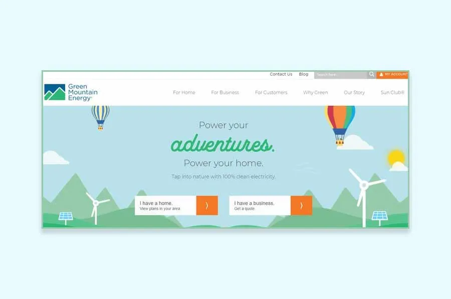 Green Mountain Energy is a 100% renewable energy company that offers clean electricity, carbon offsets, and sustainable energy to customers and businesses in the US. The homepage instantly informs visitors about the company’s purpose and its goal to provide clean energy at an affordable price.