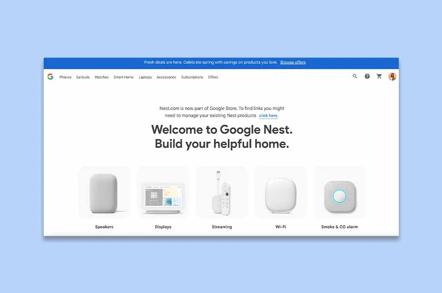 Google Nest is a part of Google Store that sells smart home products such as smart speakers, streaming devices, smart displays, smoke detectors, routers, and security systems.