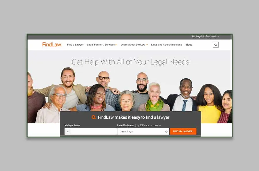 FindLaw is a business of Thompson Reuters that provides online legal information and online marketing services for law firms. It has two key purposes – to educate people about the law and connect customers with lawyers and effectively does this through its homepage design. It has primary CTA in bright colors that help people find lawyers nearer to them.