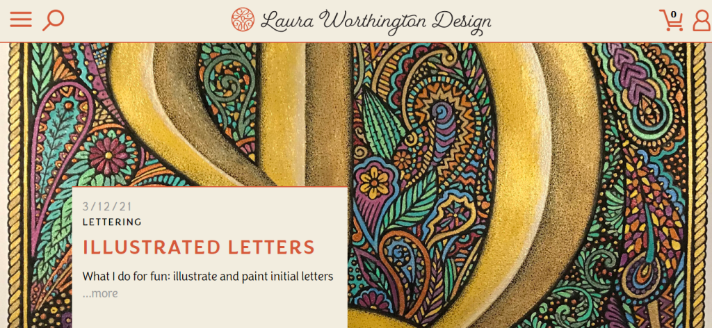 The homepage has image sliders of different fonts with a feminine and colorful look. From the first glance at this homepage, you instantly know what Lauren offers on her page.
