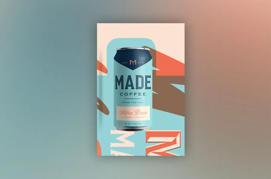 In this Made Coffee package design, stunning typography takes center stage. It quickly draws the consumer in and entices them to read more since it is attractive, sophisticated, and fun.