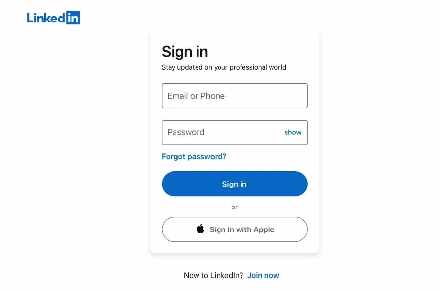 LinkedIn’s login page features a simple design without any background images or animations that are straight to the point and very easy to use.