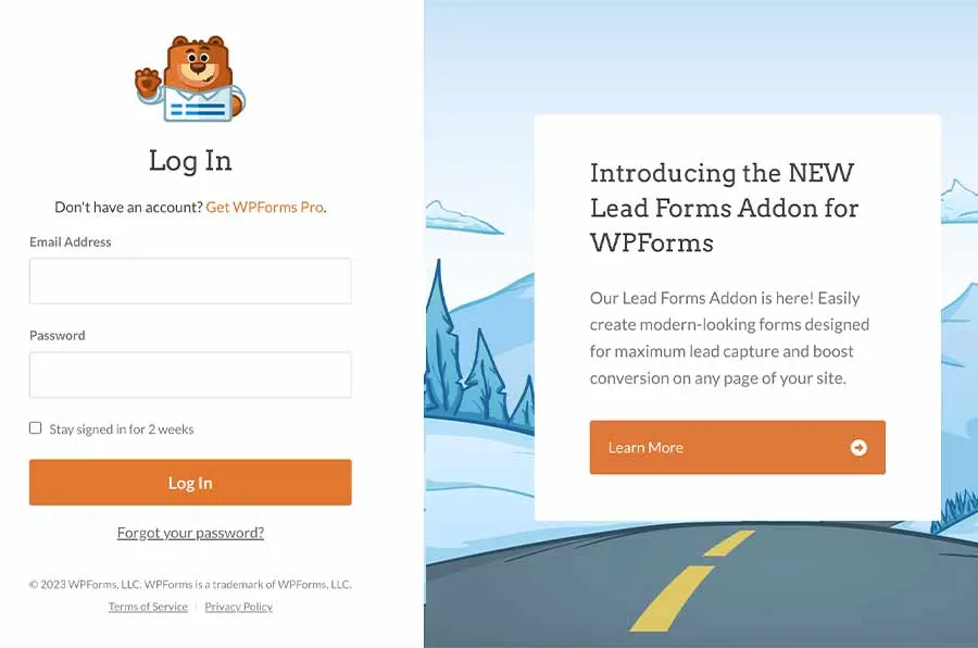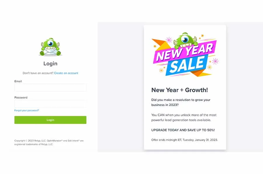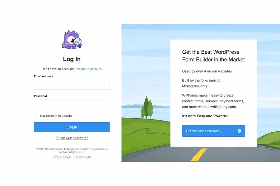 This login page like OptinMonster has a sign-in form that also allows users to learn while logging in to the site.