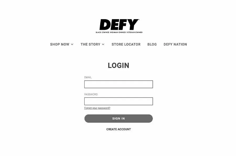 Defy is a black, woman, and veteran-owned company that produces performance CBD beverage drink that helps athletes and active individuals achieve all their body goals. The simple login form is user-friendly, beautiful, and easy to use. Check out the page guide about landing page designs.