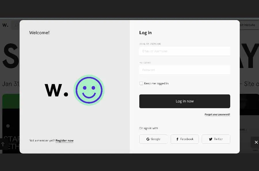 It also serves as a design portfolio platform for job recruiting and for sharing their work online. Its login page has a design on the left side and the form on the right. Unlike other social login forms, the Dribble sign-in page allows users to log in via Google and Twitter.