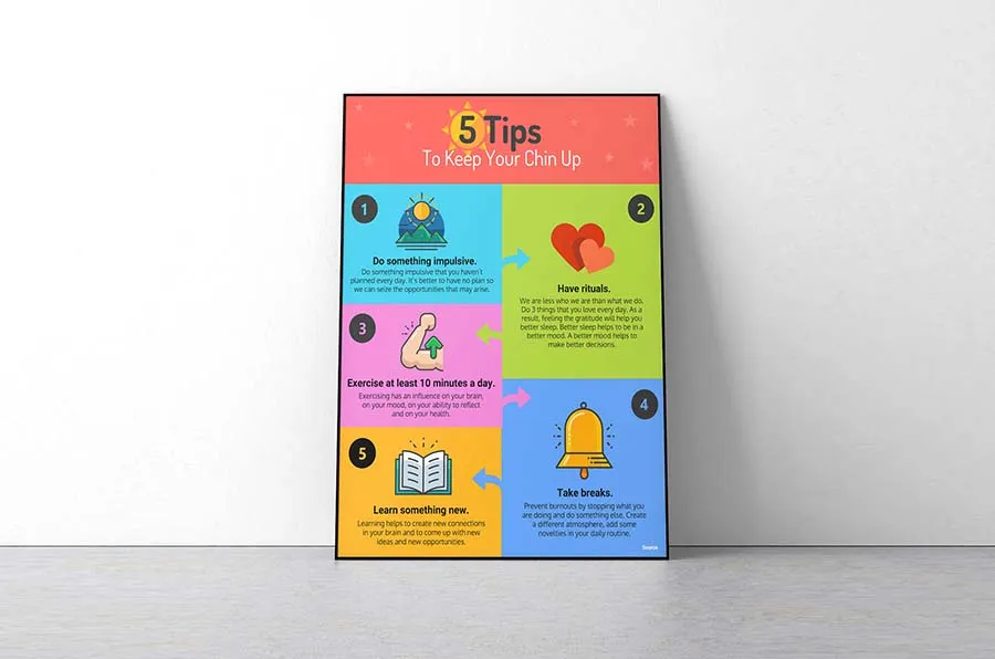Using simple colors and white space also helps make the poster more engaging. This kind of poster can be pinned to a wall or notice board for easy access.